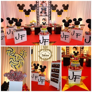 Tudo começou quando a mamãe Gláucia nos ligou pedindo para elaborarmos o projeto para o 4º aninho do Juan, cujo tema seria Mickey. Estávamos em uma das nossas viagens a SP e sentimos que apenas Mickey seria muito pouco para uma pessoa que dedica tanto para festejar o aniversário de seu filho e quando esse aniversariante se tratava de Juan Felipe, um menininho super estiloso e sempre está na moda! Então, juntas definimos que teríamos que colocar um glamour nesse tema, e foi então que decidimos por Mickey em Hollywood.